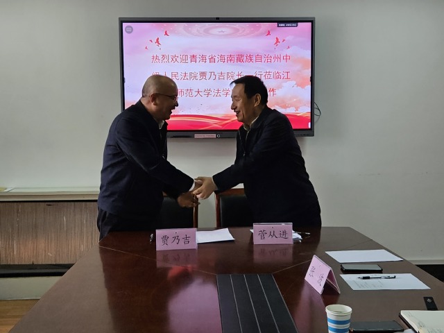 菅从进院长感谢青海省海南藏族自治州中级人民法院对法学院学科建设工作的大力支持。他表示,青海省海南藏族自治州中级人民法院等公检法实务部门近几年发展迅速,是具备丰富的西部法治建设各种资源优势的单位,多年来始终紧跟时代发展,在汉藏双语法治人才培养培训与普法宣传教育及大美青海生态环境保护审判职能等领域做出了重要贡献,这对加强法学教育和法学理论研究具有很好的借鉴意义。此次双方的合作,是基于“资源共享,优势互补,责任同担,利益共享”的原则展开,因此菅从进院长希望,双方以本次签约为开端,扎实推进相关工作,把教学科研和司法实践紧密结合起来,努力夯实在项目研究、人才培养、学科建设、民族地区司法机关综合发展等方面的深入合作。