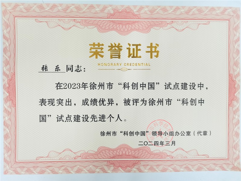 近日,徐州市科学技术协会公布了2023年度“科创中国”试点城市建设先进单位和先进个人评选结果,本次评选的“科创中国”试点建设先进单位共15家,物电学院是唯一一家来自高校的单位,同时,物电学院张乐副院长获得了“科创中国”试点建设先进个人。