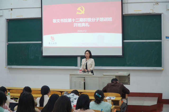 4月12日晚,敬文书院举行第十二期积极分子培训班开班典礼。院党委副书记杜昀、党务秘书李晨以及全体学员参加了开班典礼。