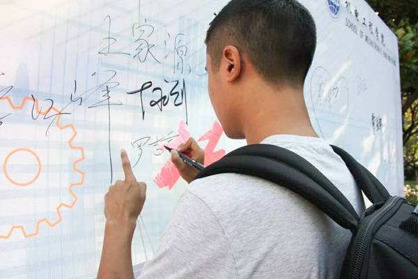 9月9日,迎新工作依旧有条不紊的进行。今年,秉承着“真爱青春”的理念,在学生会主席蔡睿的建议下,高年级的学长学姐们为新生们制作了手绘信封,每一份信都包含了他们对新生最真切的祝福,同时,学院还安排了“签名墙下拍全家福”、“领取手提袋及礼品”等活动,使得新生们消除了初来乍到的陌生感。