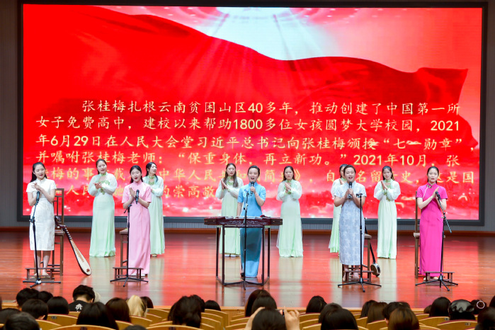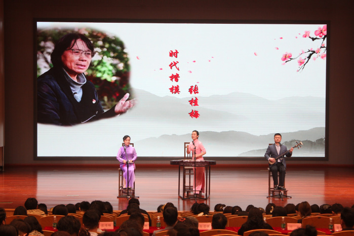 “七一勋章”获得者、时代楷模、“全国优秀共产党员”张桂梅老师,扎根偏远山区,二十余年如一日,行善助学,勇挑重担,爱生如子,傲笑病魔,树立起了新时期“四有”好老师的典范。本次来自徐州幼儿师范高等专科学校的师生,将张桂梅老师的先进事迹,以国家级非物质文化遗产徐州琴书的形式加以展现,为学院师生上了一堂生动的党建与师德师风建设教育课,使学院师生,特别是党员师生感悟到了一名共产党员的信念与坚守,感受到了一名人民教师的慈祥与仁爱,感念到了新征程上为党育人、为国育才的使命与荣光,也为学院深入贯彻落实立德树人理念,丰富发展以“千教万教,教人求真;千学万学,学做真人”为核心的“乐坛红烛精神”提供了难得的学习契机。