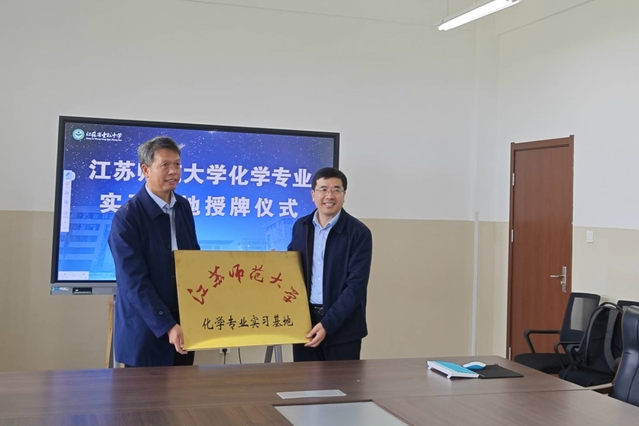 随后,王香善书记一行来到江苏省丰县中学开展走访交流。先后深入校园、“高中化学循证教学”江苏省课程基地和教研室进行走访,看望学院毕业生校友。接着,结合师范生实习、技能培养、师资招聘等方面与学校领导开展座谈交流,并举行了“江苏师范大学化学专业实习基地”挂牌仪式。