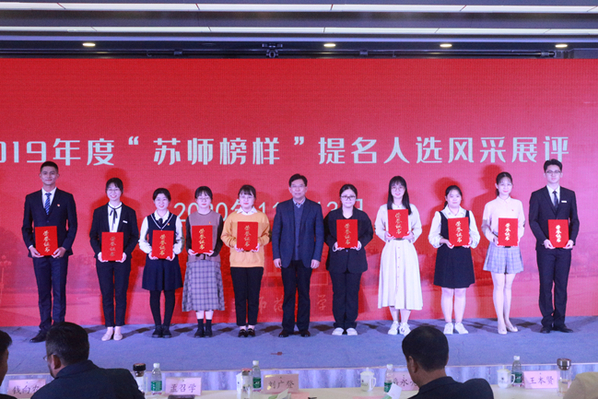 11月13日晚,学校2019年度“苏师榜样”评选活动在分析测试中心300举行。经过学院推荐,学校初评,26位学生入围“苏师榜样”优秀大学生评选活动风采展评。经过激烈角逐,我院2017级机械设计制造及其自动化专业郭洁同学表现较好,获2019年度“江苏师范大学榜样”—— “技能状元”荣誉称号。