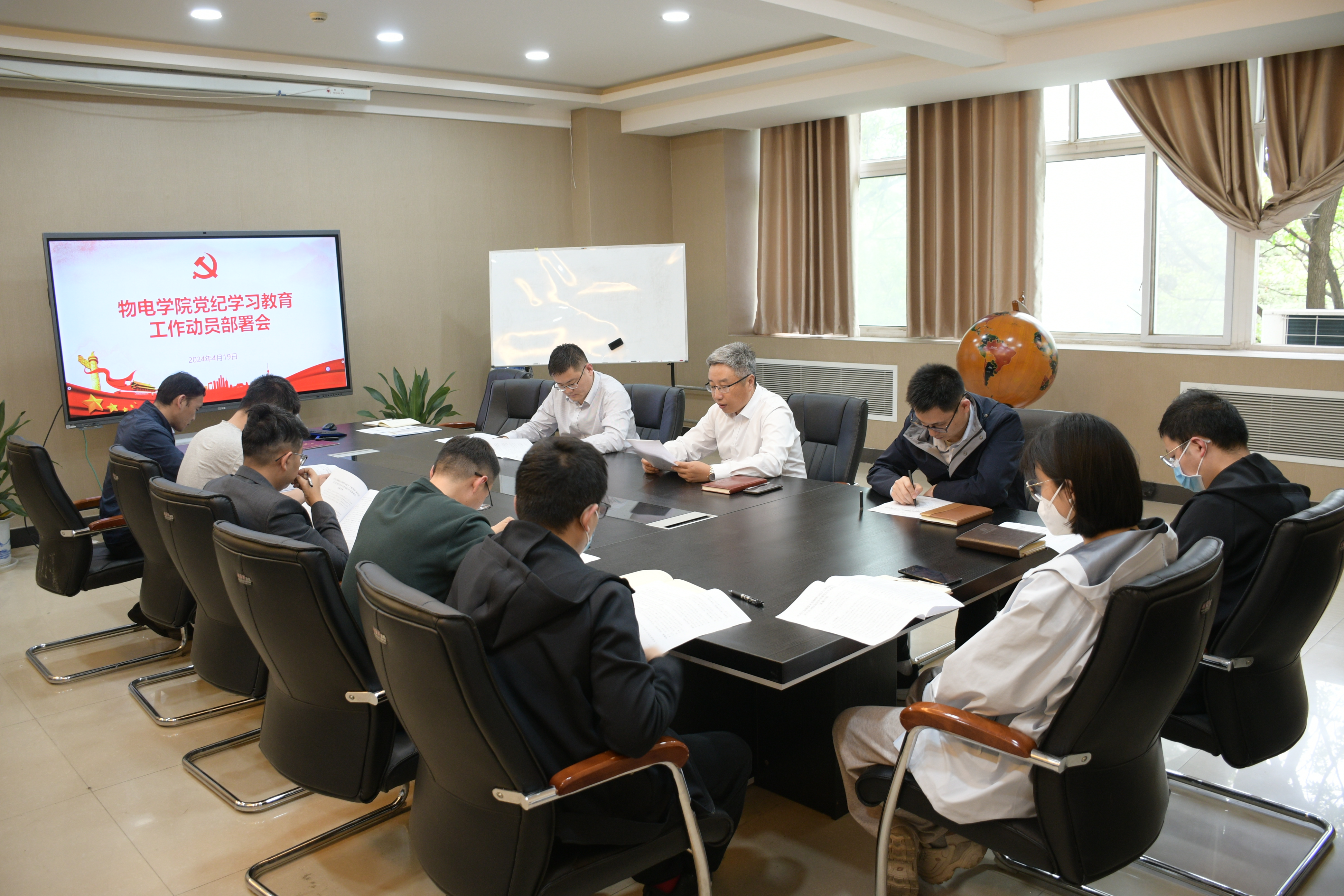 4月19日下午,物电学院召开党纪工作教育工作动员部署会议,学院领导班子全体成员、各基层党支部书记参加会议。会议由院党委书记王夫寿主持。