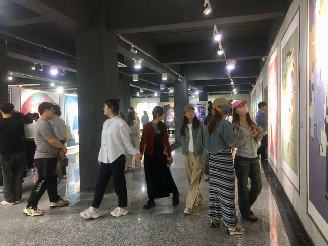 研究生院副院长夏志华教授从作品主题紧扣研究生专业培养目标、作品展对研究生美育发挥重要作用两方面谈本次展览的特殊意义。夏院长指出,本次展览不仅展示了同学们的才华和实力,更体现了美术学院在培养创新型美术理论研究、教学与创作人才方面的成果。她鼓励同学们继续努力钻研,用手中的画笔描绘祖国的繁荣景象,传递人们对美好生活的向往。