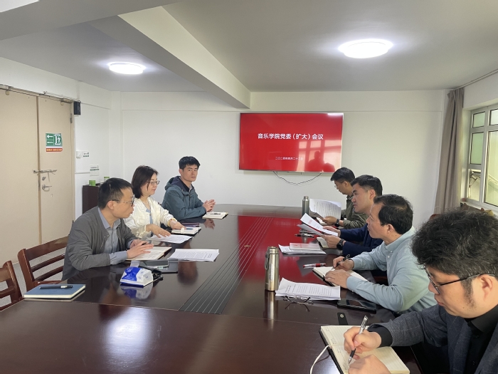4月22日上午,音乐学院召开党纪学习教育部署动员会暨2024年度第三次党委(扩大)会议,学院党政班子成员、支部书记参加会议,党委书记高小平同志主持会议。