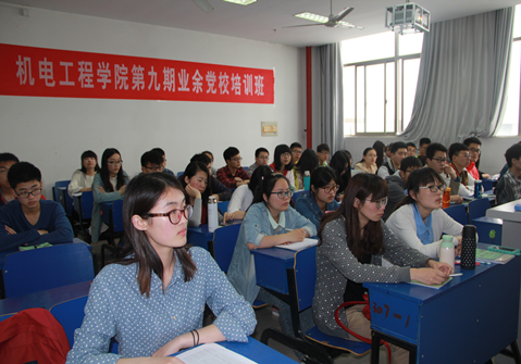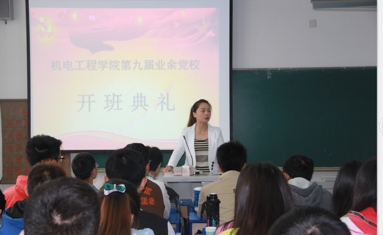 5月10日上午, 机电工程学院第九期业余党校开班典礼在8号楼210教室举行。学院党委副书记梁宝文、党委秘书项楠和全体学员参加了开班典礼。
