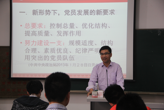5月10日下午14点30分,机电工程学院进行第九期业余党校第三讲学习。校党委组织部专职组织员刘响来应邀为学员授课。