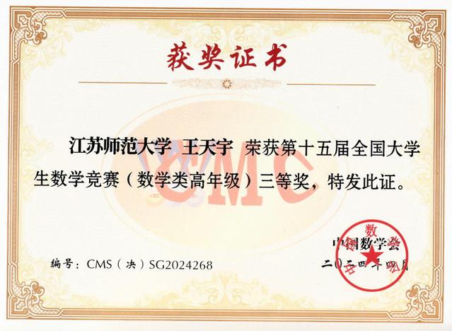 学校高度重视该项竞赛活动,认真动员,积极整合优势资源,组织优秀教师团队对参赛学生进行赛前培训和指导。此次陈天元、王天宇两位同学优异成绩的取得,是学校长期以来实施卓越人才培养的成果,充分展现了江苏师范大学数学学科拔尖人才培养成效。连续多年组织参与该项竞赛工作也是我校持续推动高等数学等公共课课程改革,提升我校学生数学能力,助力高质量人才培养的重要举措。