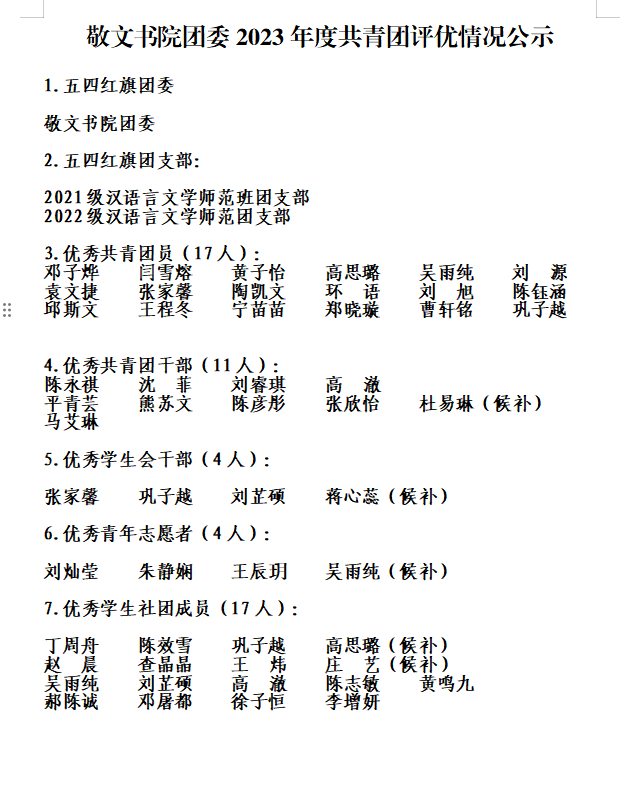 经前期各支部申报、书院审核、学生工作小组评审,拟将以下个人(集体)作为推报对象,现予以公示。