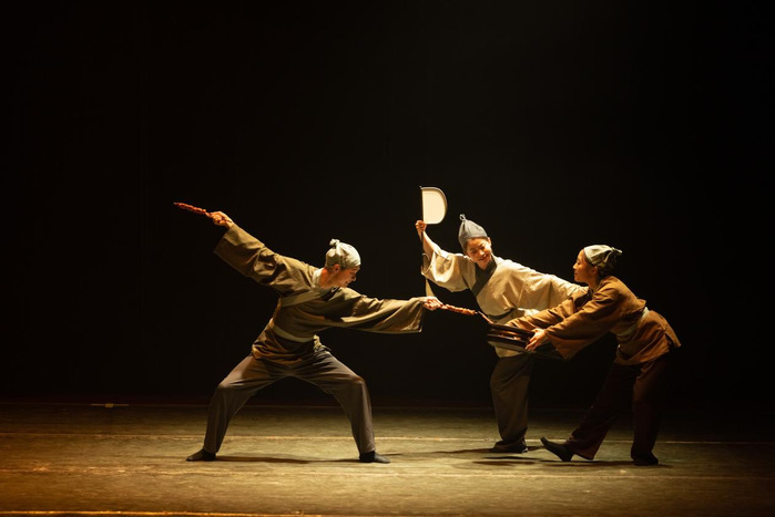 三人舞作品《庖厨图》以徐州汉画像石艺术馆中编号216展品、出土于徐州铜山汉王乡东沿村的汉画像砖《庖厨图》为创作灵感,通过诙谐幽默的舞蹈语言,再现汉代庖厨的生活场景和生命活力。穿越历史的烟云,让我们仿佛感受到,汉人追求美味的幸福气息。