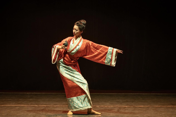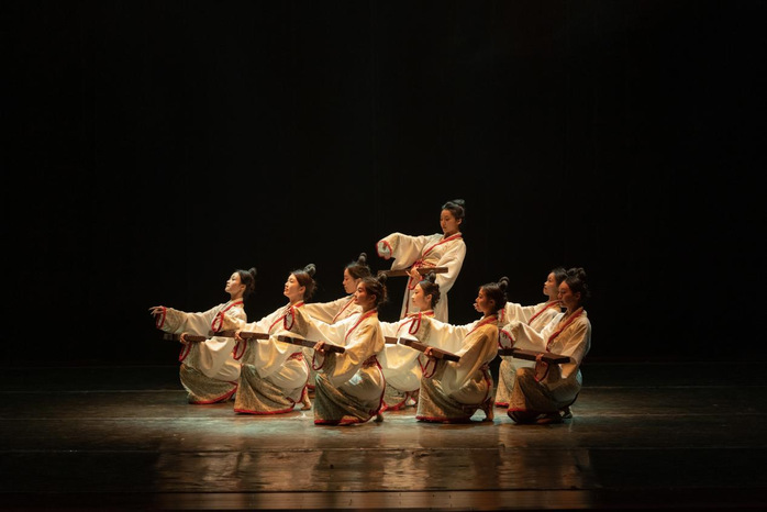 独舞作品《上浆图》聚焦汉代纺织工艺中的上浆环节,以肢体再现劳动之美,呈现出丝线浸润浆液时匠人精神与传统智慧的交织辉映。作品既是对传统技艺的致敬,更是对汉代纺织文化的深入探索与当代艺术的表达。