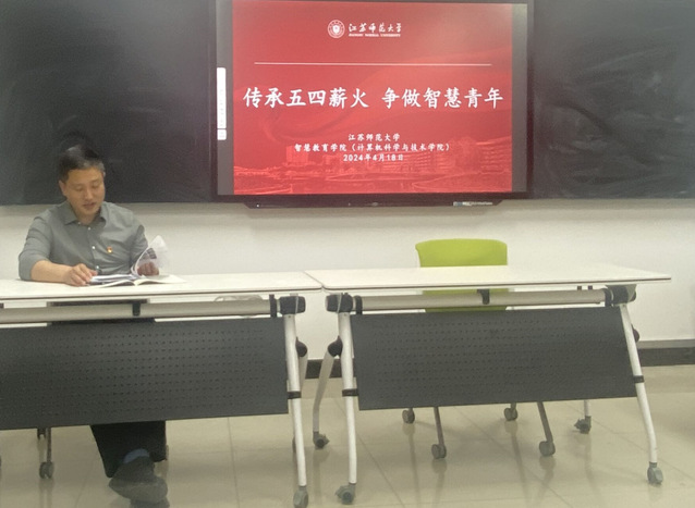 为深入学习领会习近平总书记参加十四届全国人大二次会议江苏代表团审议时重要讲话精神,教育引导青年大学生牢记嘱托、砥砺奋进,发扬五四精神,积极投身中国式现代化的江苏实践,为强国建设、民族复兴贡献青春力量,按照学院党委工作部署,4月18日晚,学院党委书记周显洋受邀为软件工程专业21级71班同学讲授“传承五四薪火 争做智慧青年”的专题思政课,软件工程系系主任、该班班主任宋媚副教授及全体同学参加学习。