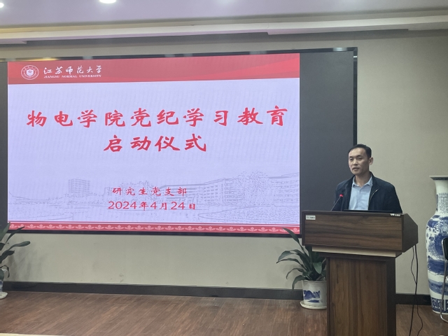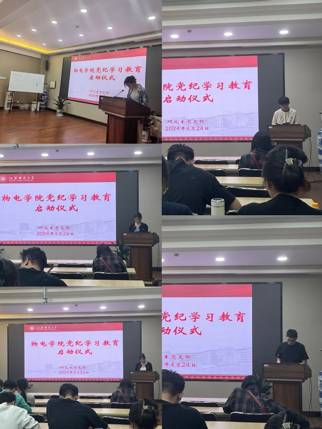 2024年4月24日晚19:00,物电学院研究生党支部在7#327会议室正式召开了党纪学习教育启动仪式,研究生党支部全体党员参加了本次启动仪式。此次会议旨在深入贯彻落实党的纪律要求,加强研究生党员的党性修养,推动学院党建工作的创新发展。