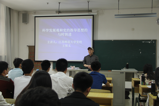 王校长从中国共产党重视思想理论建设的历史出发,梳理了党的指导思想的确立及发展演变过程,强调把科学发展观作为党的指导思想的必要性和深远意义。王校长以生动的语言告诉同学们该如何全面理解和把握党的指导思想,并勉励同学们要为实现中华民族的伟大复兴而努力奋斗。