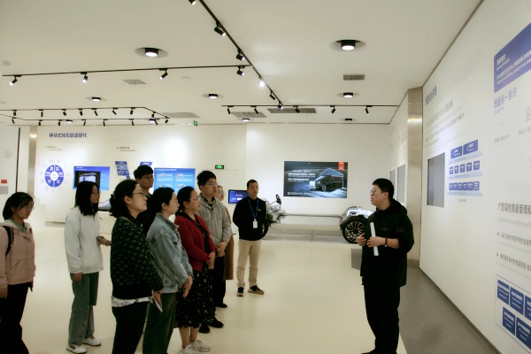 宁德调研活动的第三项议程是来到宁德时代企业展厅,跟随讲解员的步伐,追溯了解了宁德时代从锂离子电池实现商业化到领航国际锂离子动力电池制造的辉煌发展史,师生们切身感受到了宁德时代“修己、达人、奋斗、创新”的企业核心价值观。在参观过程中,师生们了解到宁德时代不仅注重技术创新和产品质量的提升,还积极响应国家绿色发展的号召,致力于实现绿色经济的循环利用。公司从电池的生产、使用到报废回收,都建立了完善的生态体系,实现了全生命周期的管理。