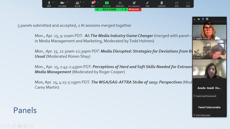 近日,江苏师范大学传媒与影视学院张陈杰副教授作为美国广播教育协会(Broadcast Education Association,BEA)媒体管理、市场和编辑部门(Media Management, Marketing, and Programming Division, MMP)主任,组织并主持了该部门的年度工作会议。此次会议汇聚了包括协会执行主任Heather Birks、国际区代表Max Grubb以及众多部门会员,共同审议去年的工作成果,并讨论未来的发展方向。