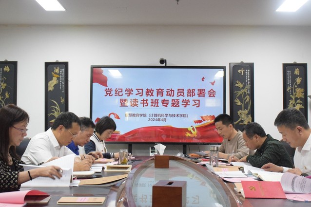 为认真贯彻落实党中央、省委部署及学校党委关于开展党纪学习教育工作要求,进一步推动全院党员党纪学习教育工作深入开展,4月26日,智慧教育学院召开党纪学习教育动员部署会暨读书班专题学习。学院领导班子成员和全体党支部书记参加。