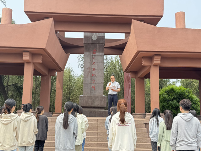 接着,在宿北大战纪念碑前,学院党委副书记徐作锋领学了《中国共产党纪律处分条例》,强调了党纪学习的重要性,要求全体党员应始终把党规党纪“刻印在心”。随后,全体党员面对鲜红的党旗,举起右手,用铿锵而坚定的声音齐声宣誓,重温入党誓词。