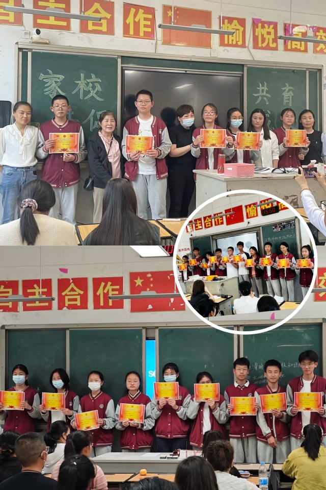 接下来,各班级班主任介绍近期班级情况并分析期中调研结果,表彰优秀、进步学生及家校共育表现优异的家长。