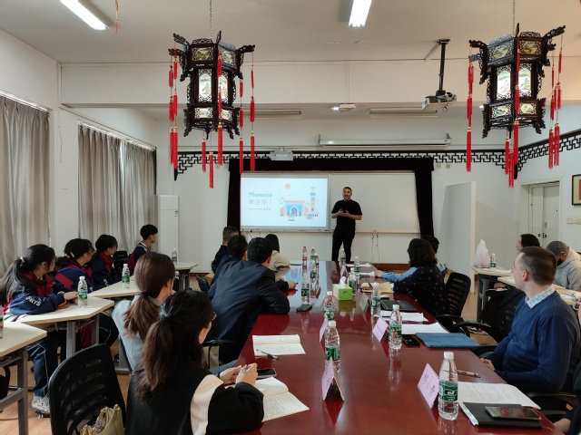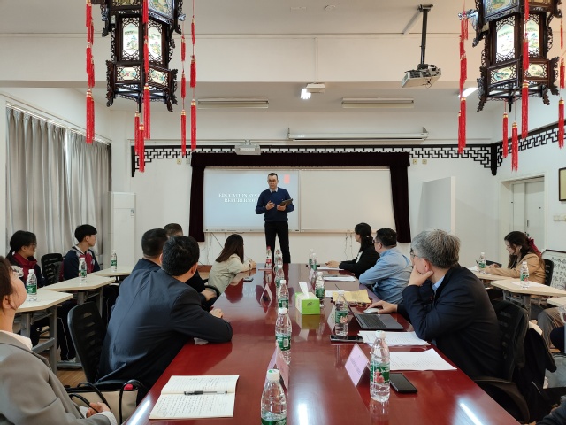 活动伊始,国际学院院长侯铁建热情地向来访师生介绍了国际学院的人才培养概况。他详细介绍了国际学院的职责定位、留学生规模和来源国情况、专业设置以及国际化办学成果,让附属中学的师生们对学校来华留学培养有了更加全面而深入的了解。