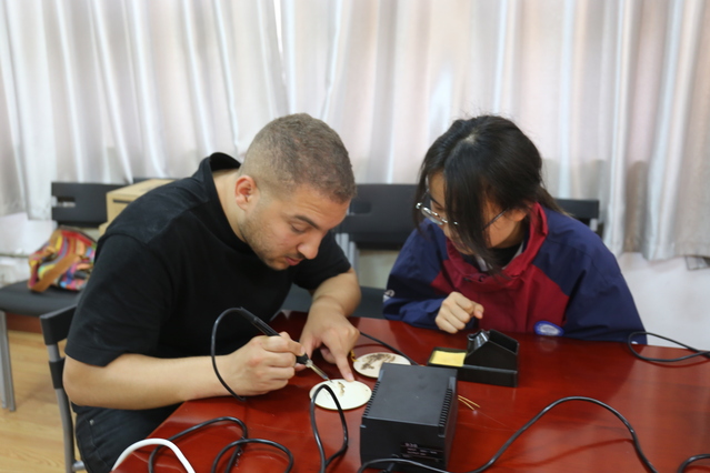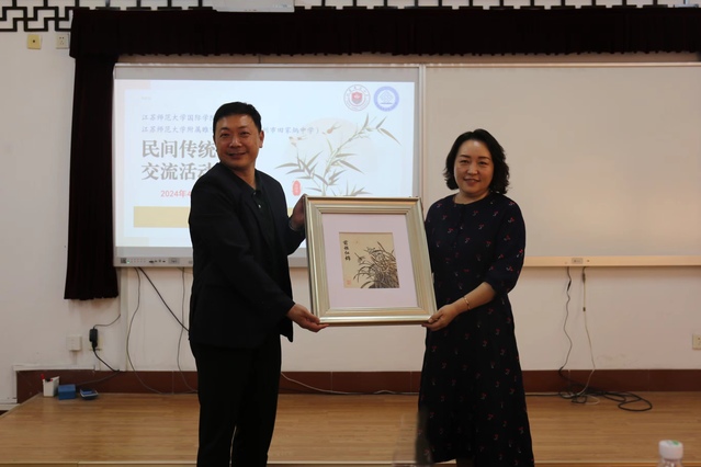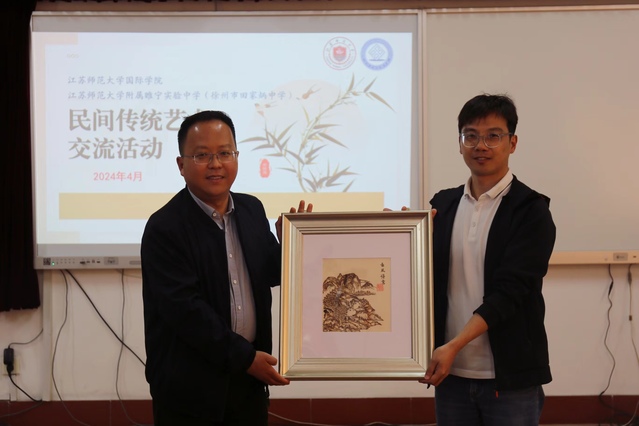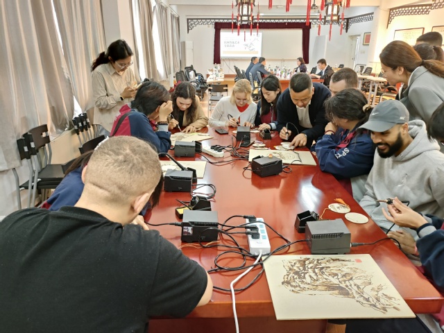 活动的最后,附属中学孙孝东老师现场展示和介绍了烙画这一传统技艺。在孙老师的指导下,中学生和外教老师、留学生们结对,共同动手制作了烙画作品。这一环节不仅增进了两校师生之间的友谊,也让大家深刻感受到了中国传统文化的魅力。