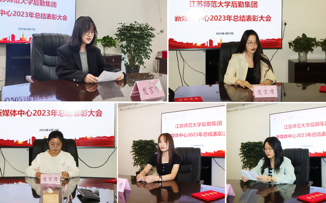 后勤集团新媒体中心运行的“江苏师大后勤”微信公众号关注师生已突破52000人,月度WCI指数位列全校新媒体前3甲,为总结工作、表彰先进、交流经验,进一步做好正面宣传工作,4月27日上午后勤集团新媒体中心在会议室召开2023年度总结表彰大会。后勤集团党委书记蒋国杰、党政办公室主任付敏、党委秘书徐兴钰、党政办公室副主任蒋陈龙、新媒体指导老师王文平及新媒体中心成员参会。会议由党政办公室主任付敏主持。