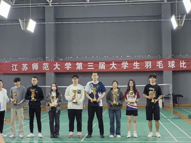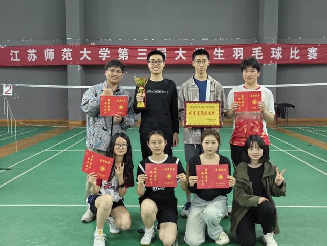 4月20日-4月21日,江苏师范大学第三届大学生羽毛球比赛在泉山校区敬文羽毛球馆举办,地测学院荣获团队第五名以及体育道德风尚奖。