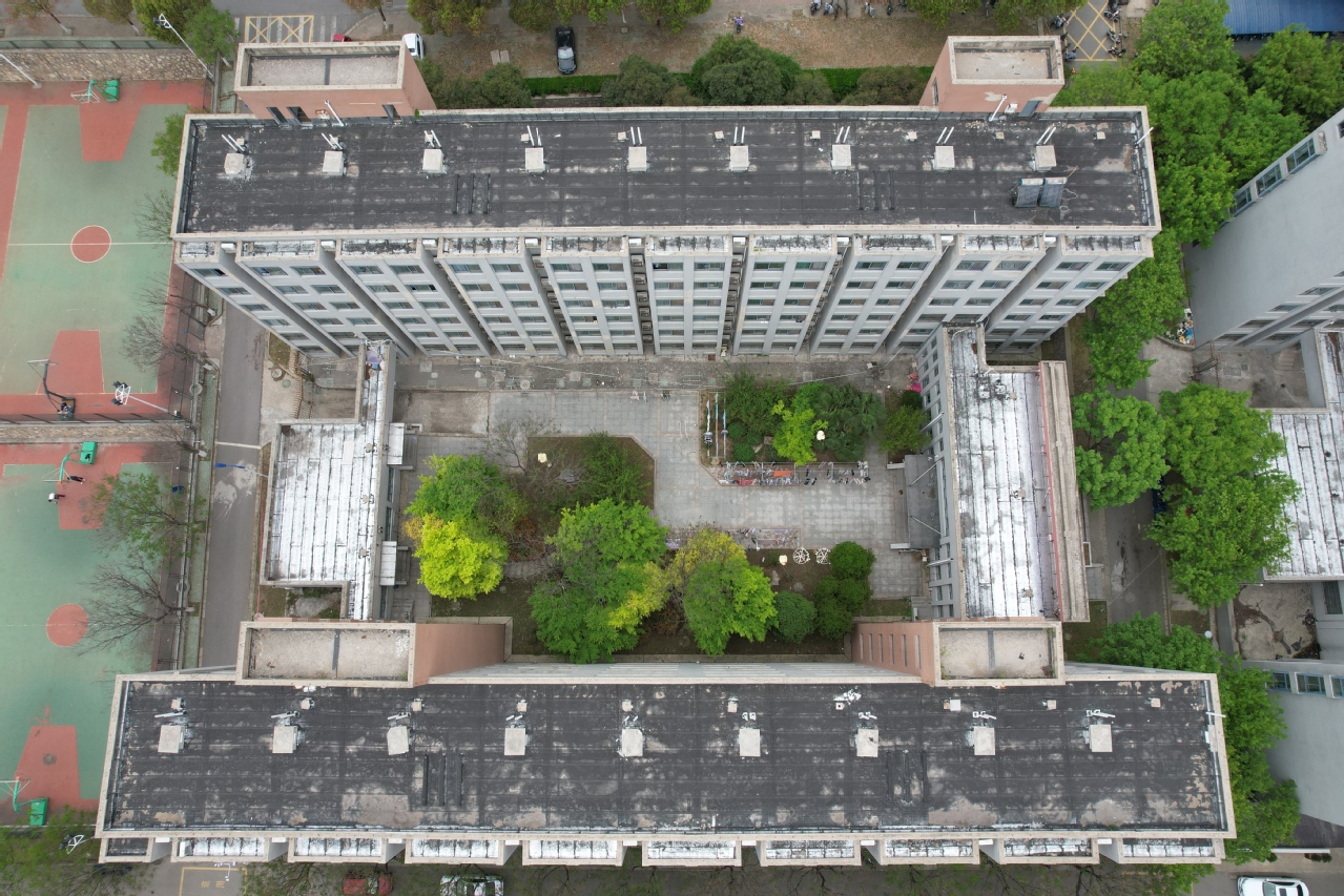 此次防汛安全巡查覆盖泉山、云龙校区内52栋教学楼(含实验室、食堂及附属楼宇)、48栋学生宿舍楼宇屋面。无人机的高空视角和灵活机动性能够不受地形和人力限制,能够轻松拍摄到人工难以攀爬抵达的楼宇屋面区域,实现了全覆盖、多角度的安全巡查。