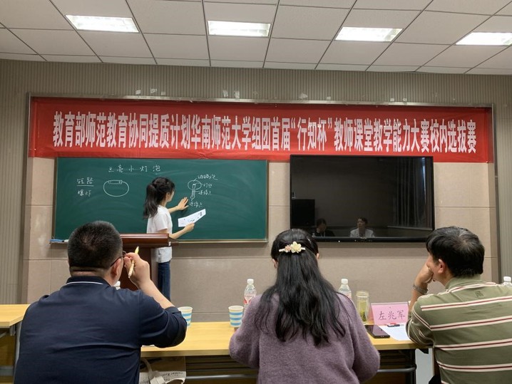 为深入贯彻落实教育部师范教育协同提质计划,提升师范生的课堂教学能力,选拔和培养课堂教学能手,4月20日下午,由教务部主办,教育科学学院承办的教育部师范教育协同提质计划华南师范大学组团首届“行知杯”教师课堂教学能力大赛小学科学组校内决赛在5号楼102教室成功举办。