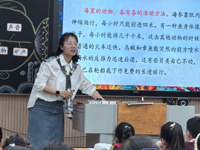 鹿老师借助思维导图、角色扮演等方式,引导学生模拟动物的肢体动作、声音等,再现海底动物的活动方式,充满趣味性的教学方式充分调动了学习的积极性,创造了轻松愉悦的学习氛围。