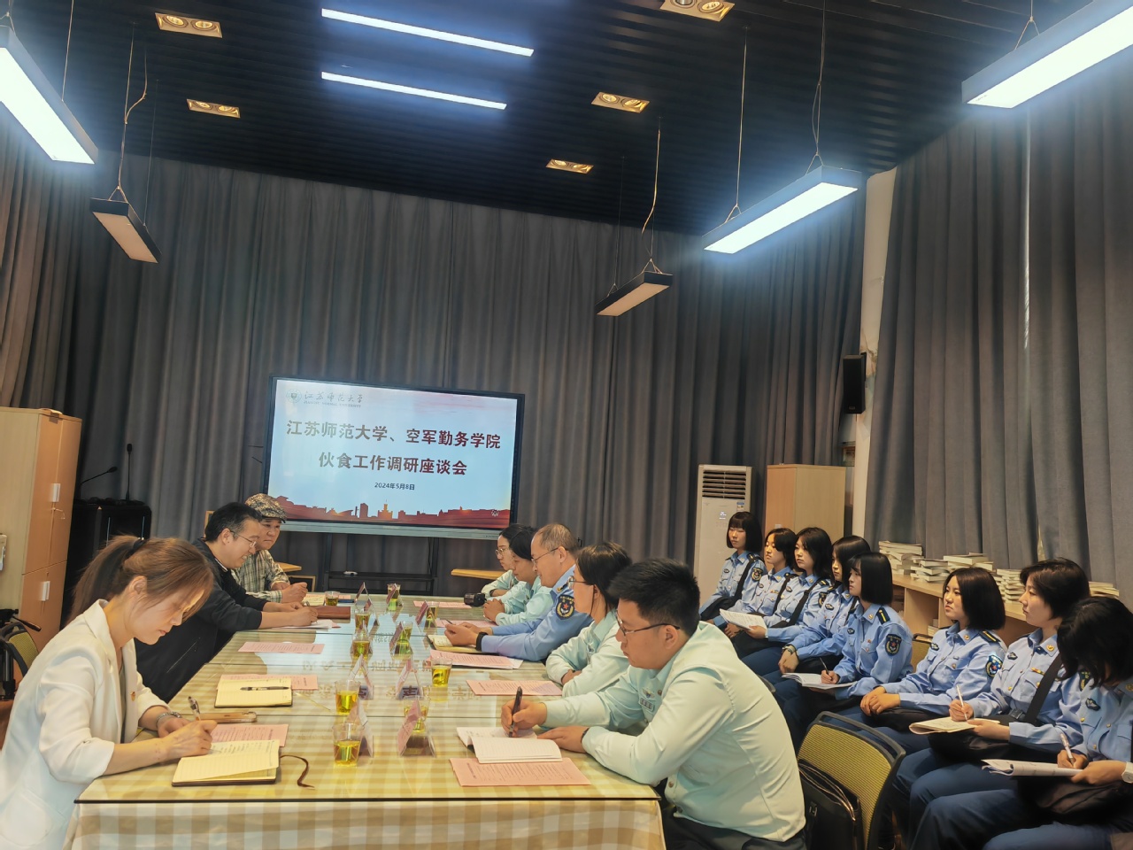 座谈会上,陈健强主任对空军勤务学院航空军需与燃料系一行的来访表示热烈的欢迎,并对我校饮食服务工作进行了简要介绍,分享了我校后勤餐饮管理方法、日常监督考核、成本控制及核算、运营情况以及与学生文明共建活动等。同时,双方就食品安全管理制度体系、队伍建设及责任落实机制、食品原料采购模式及价格、质量管控举措、成本核算等问题展开了深入交流和探讨。