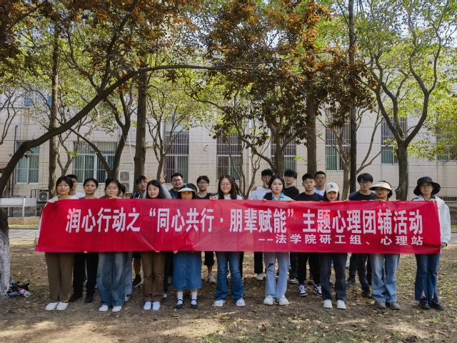 在春光明媚,万物蓬勃之际,在学校研究生院、心理健康教育中心、学院研工组的指导下,法学院心理站开展研究生心理团辅活动,22级、23级研究生参加此次活动,引导同学们从教室和图书馆中走出来,在大自然的春光中感受美好,同时,加强同学之间的交流,提高团体凝聚力。