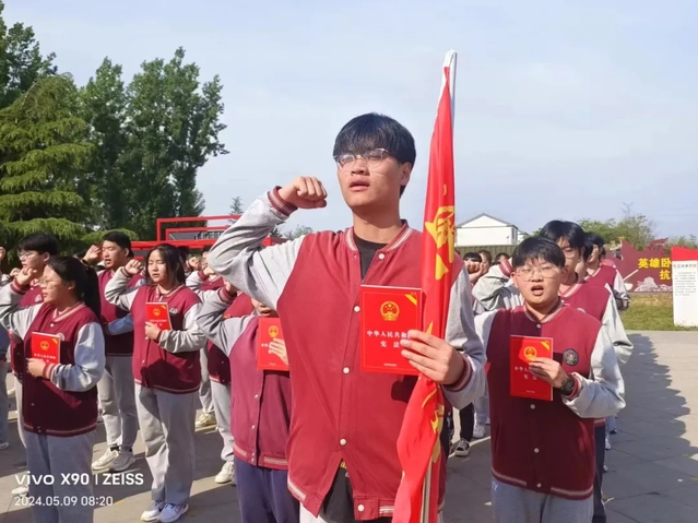 拿好宪法手册,领誓人张季星带领全体学生庄严宣誓:不畏艰难困苦,不负恩师厚望;以国家昌盛为先,以人民利益至上;以我火红青春,建设锦绣中华;以我壮志激情,铸造崭新未来!