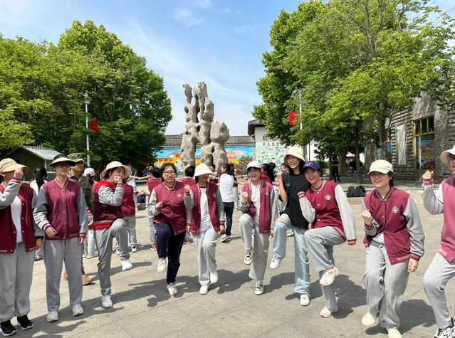 在广场上,教官带领学生们进行拍拍操、动力绳和激情节拍等趣味活动,为高三学子们解压放松。