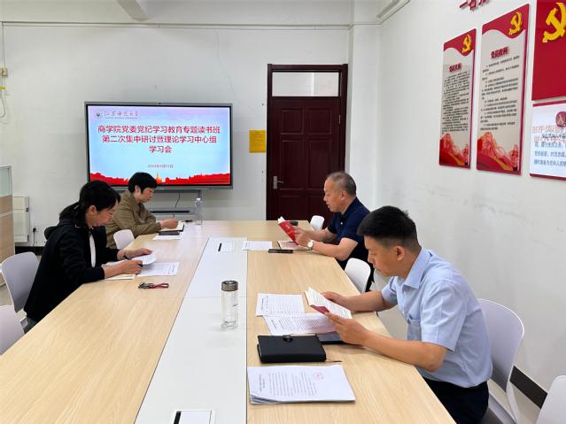 5月13日上午,商学院党委举行党纪学习教育专题读书班第二次集中研讨暨理论学习中心组学习会,院党委理论学习中心组全体成员参加学习。会议由院党委书记钱程主持。