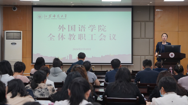 5月15日下午,外国语学院召开全体教职工大会,会议由学院党委书记庄园主持。
