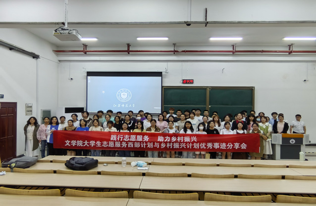 为了更好推进“江苏大学生志愿服务乡村振兴计划”“大学生志愿服务西部计划”的实施,帮助学生进一步了解志愿服务的相关政策,引导学生主动深入基层,践行志愿青春使命,5月14日晚,文学院在西教14号楼举办了“践行志愿服务 助力乡村振兴”大学生志愿服务西部计划与乡村振兴计划优秀事迹分享会。会议由文学院团委书记符靖璇老师主持,2023级研究生代表张莹莹、2023届毕业生赵文静和2006届毕业生郭泽炜受邀进行优秀事迹分享,2024届本科生和研究生及其他年级学生代表参加分享会。