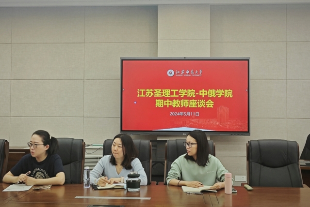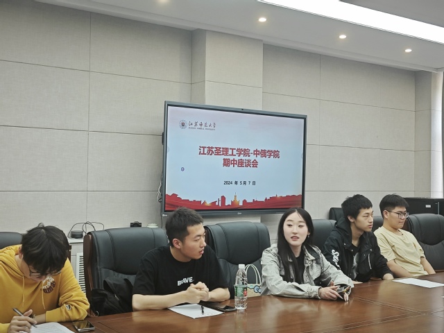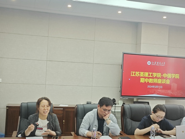 为进一步规范教学管理,提升教学质量,加强教风与学风建设,不断提升国际化办学水平,江苏圣理工学院-中俄学院分别于5月7日和5月11日召开了期中教学检查师生座谈会。学院党委书记尹燕萍、教学副院长卜伟、教师代表、教务秘书王佳以及学生代表参加会议。