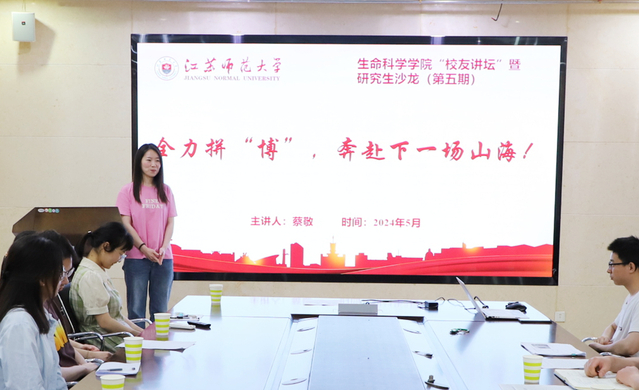 5月17日下午,生命科学学院“校友讲坛”暨“暖心‘研’途•共话成长”研究生沙龙(第五期)活动顺利举办。学院副院长张春雷出席活动。2018届生物学专业校友、优秀博士蔡敬进行主讲。辅导员徐国亮及各班级研究生代表参加活动。