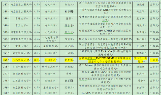 近日,江苏省优秀本科生毕业论文评选结果已公示,敬文书院2023届生物专业毕业生赵梦露同学的本科毕业论文《重铬酸钾通过TMODD2-NPM2信号通路诱发肠癌中心体扩增的机制研究》荣获江苏省三等奖。
