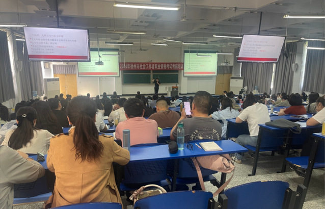 为进一步壮大我市专业社会工作人才队伍,切实提升参考人员考试通过率,5月13日,由我院承办的面向全市已报名考生考前培训班在泉山校区17#200C顺利举行。