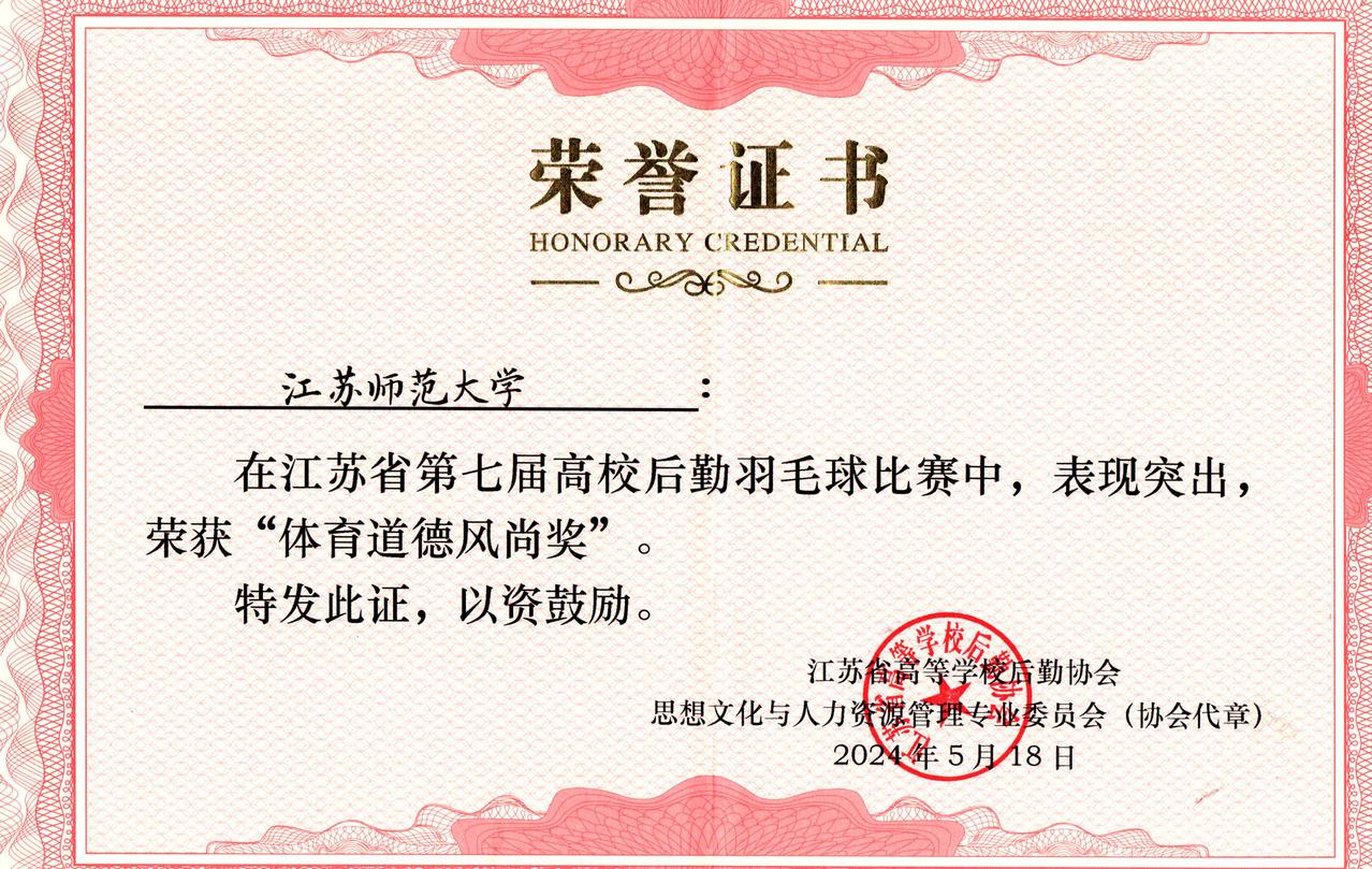 5月18日,江苏省第七届高校后勤羽毛球比赛在苏州科技大学火热举行。后勤集团代表队在比赛中展现出了良好的竞技水平和高尚的体育精神,荣获了体育道德风尚奖。
