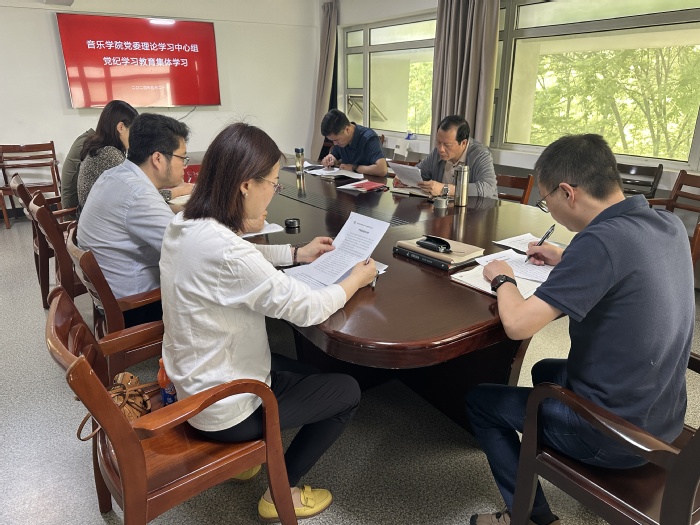 5月20日上午,音乐学院党委理论学习中心组举行了党纪学习教育集体学习,学院党委委员参加学习,学院其他领导班子成员列席,党委书记高小平同志主持学习。