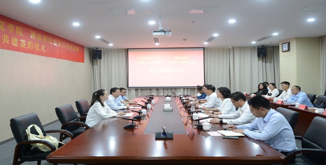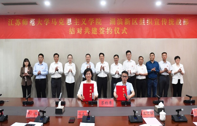 随后,薛深一行前往湖滨新区党政办公大楼202会议室参加结对共建签约仪式。区党工委书记张先彦对薛深一行的到来表示欢迎,并介绍了湖滨新区经济社会发展情况。薛深表示,江苏师范大学马克思主义学院拥有硕士、学士等多层次、多类型人才培养能力,马克思主义理论学科为江苏省重点学科,拥有在全省乃至全国具有较大影响的学术研究方向,希望结对共建作为双方加强学习交流的重要平台,进一步做好做深做细各项研究工作,为推动共建发展做出贡献。