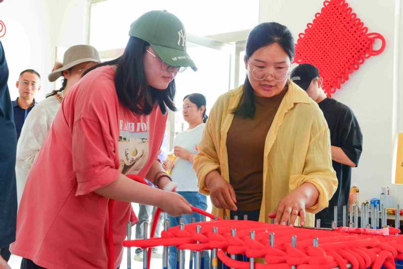下午,学院师生来到了贾家村农场、邳州市千千结工艺品有限公司(宿羊山镇“心巧妈妈”共富工坊)等地,实地参观了农事中心及田间劳作场景,部分成员还亲自体验了拔大蒜的农事活动及中国结制作工艺,深入了解当地乡村生活与农业文化。