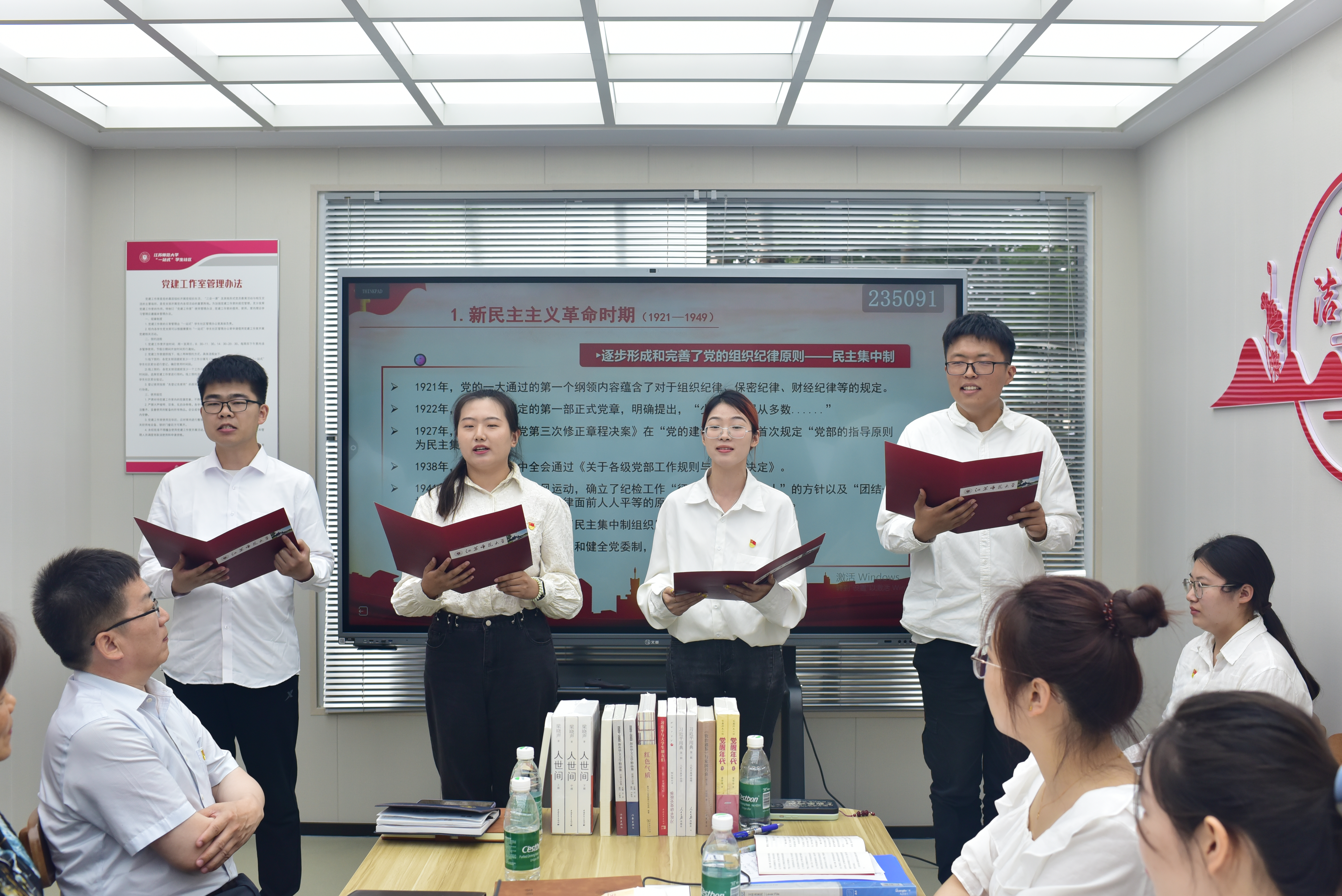 活动最后,学生党员们朗诵了《回眸百年风华路赓续初心绘宏图》,朗诵饱含深情、慷慨激昂,展现师大青年学习的蓬勃朝气与时代担当。
