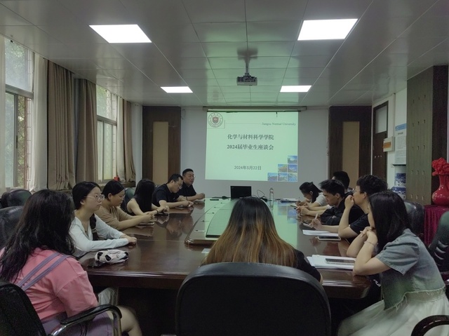 2024年5月22日上午9:00,化学与材料科学学院在209会议室召开2024届毕业生座谈会。此次座谈会旨在深入了解毕业生对学院教学管理、课程设置、实习实践及学生服务等方面的看法和建议,以便优化教育资源管理,提升教学质量。参与本次座谈会的有院党委副书记赵玉璋老师、教学副院长刘建全教授、部分教师和毕业班学生代表。会议由教学副院长刘建全教授主持。