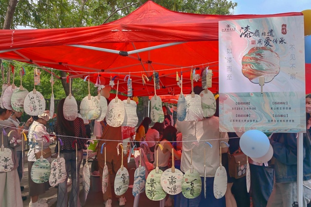 为切实将心理健康教育融入德智体美劳育人全过程,系统构建与五育相结合的心理健康教育活动体系,5月25日上午,由学工处主办,我院承办的2024年“心园百花绽放”大学生心理健康教育特色之“漆扇非遗,用爱传承”活动在泉山校区田径场举行。本次活动将中国非遗文化漆扇与心理健康教育相结合,让同学们在欣赏与实践中创造美好、以美润心。全校约120名学生参与了此次活动。