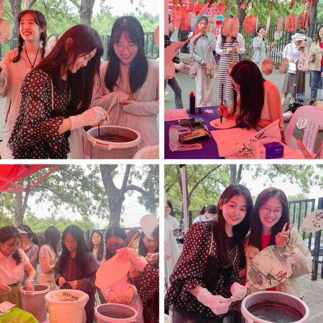 活动伊始,我院40位学生代表积极参加了学校以“五育润心,沐光同行”为主题的第二十三届“5·25”心理健康教育文化月开幕式。启动仪式后,王舒静老师和学院工作人员详细地向同学们介绍了活动流程及漆扇操作的要点。随后,现场参与活动的人员选取自己喜爱的扇面,由我院的工作人员在扇面上题写寓意美好的寄语,并盖上“科研化院”的印章,增强我院的吸引力与影响力。接着,在王舒静老师的指导下,同学们跃跃欲试,充分发挥了自己的动手能力,通过精心挑选漆料,滴画于水面之上,色彩在碰撞与相融中绽放出绚丽的光彩,晕染出独特的形状,以水为纸,以漆为画。最后,经过用心制作,无数独一无二又优美动人的漆扇在同学们手中成型,参与活动的同学彼此交流心得、互相鼓励、拍照打卡,现场气氛热烈而融洽。